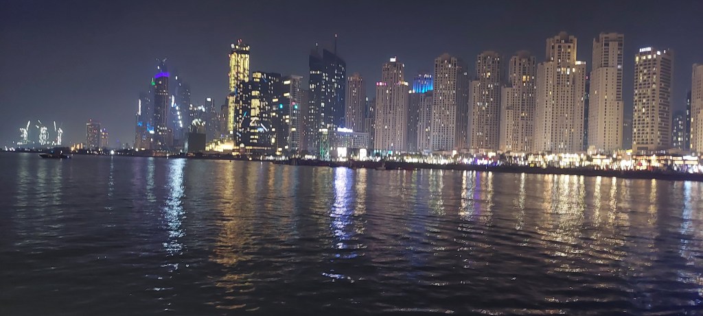 Prvi dan smo jo že precej dobro izkoristili, saj smo na letališču prevzeli SIM kartice ter po oddani prtljagi v hotelu odšli na Burj Kalifo, v Dubai Mall in v tamkajšnji akvarij, zvečer pa smo večerjali na ladji, ki je plula po dubajskem kanalu.
